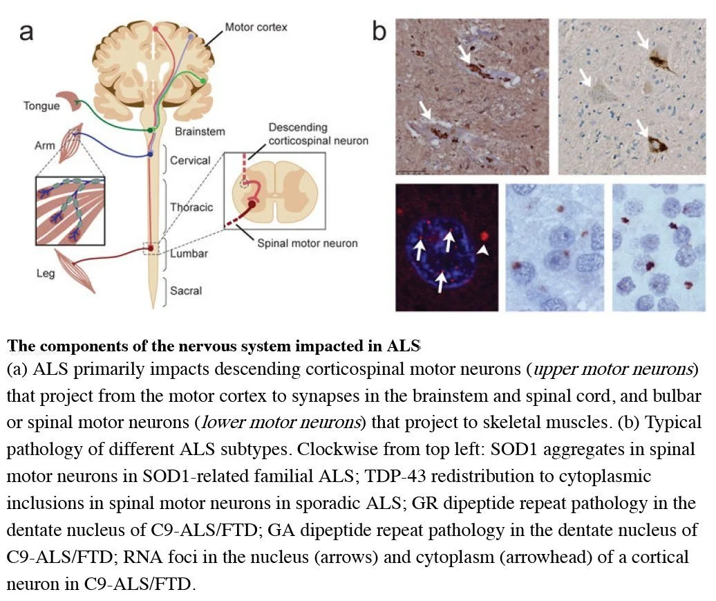 Many, if not most, neurodegenerative diseases are characterized by the conversion of native folded protein to a misfolded form via protein templating. Amyotrophic Lateral Sclerosis (ALS) has sometimes been referred to as “Lou Gehrig’s disease” and is a progressive and fatal neurodegenerative disease that is characterized by progressive degeneration of motor neurons in the brain and spinal cord. Approximately 95% of ALS is sporadic, with proteins such as Transactivation Response DNA binding protein of 43 kiloDalton (TDP-43) implicated in sporadic ALS (sALS) whereas, Copper and Zinc Superoxide Dismutase (Cu/Zn SOD) has been shown to be involved in SOD familial ALS (fALS). Below, we provide information from:
